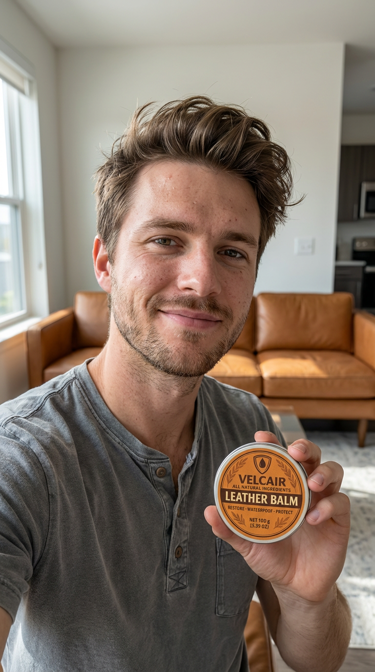 No. Unlike cheap conditioners that sit on top, Velcair absorbs fully into the leather within 1-2 hours.